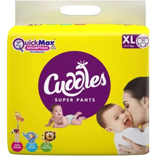 The Cuddles Super Pants Style Diaper is a comfortable and reliable pant-style baby diaper designed to keep your little one dry and happy throughout the day and night. These disposable diapers come with an elastic waistband that makes them easy to wear and remove—just like regular pants—making diaper changes quick and stress-free. With Quick Max Absorption technology, these diapers rapidly absorb moisture and lock it in, helping keep the baby’s skin dry and comfortable for up to 12 hours. They also feature a 3D leak guard and breathable, skin-friendly materials that help protect delicate skin and reduce the risk of rashes, giving both parents and babies peace of mind during daily use.